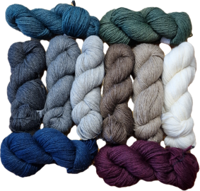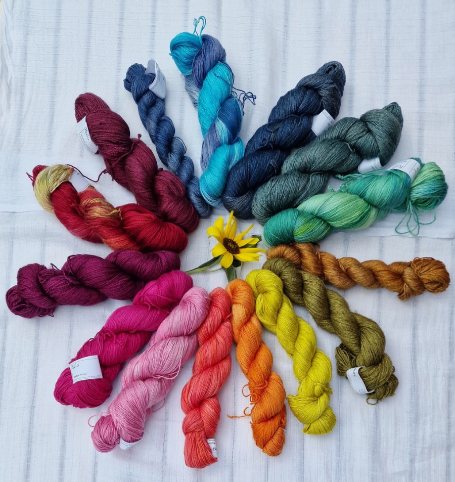 Wir haben die Farbpalette bewusst klein gehalten, denn es ist in erster Linie für dieses Projekt (siehe Bild) gedacht. Die Buntfärbungen sind in gedeckten und regenbogen Farben sowie wenige Versuchsfärbungen in Uni Blau (solange Vorrat reicht).